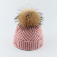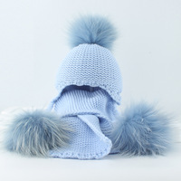新作子供用アライグマ毛皮帽子スカーフセット3ボールカラー耳保護キャップ暖かいクロスボーダーアクリル100% イメージスタイル