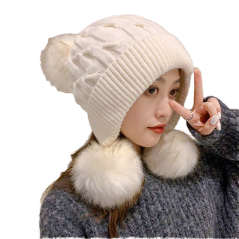 2025 nóng bán phổ biến nóng bán Womens mùa đông dày cáp đan Beanie giả lông POM Mũ sọ cap